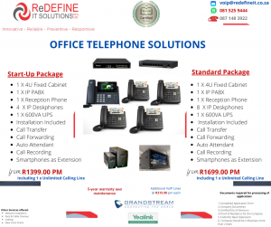 We offer telephone system equipment rental asset finance funding starting from R899.00 per month. We Supply VoiP lines, for Home and Office. If you are looking at Cutting your Telephone Bill by up to 30%, Redefine IT Solutions is here for you. We sell Routers which take any Sim Cards for Home & Office Data & Internet.